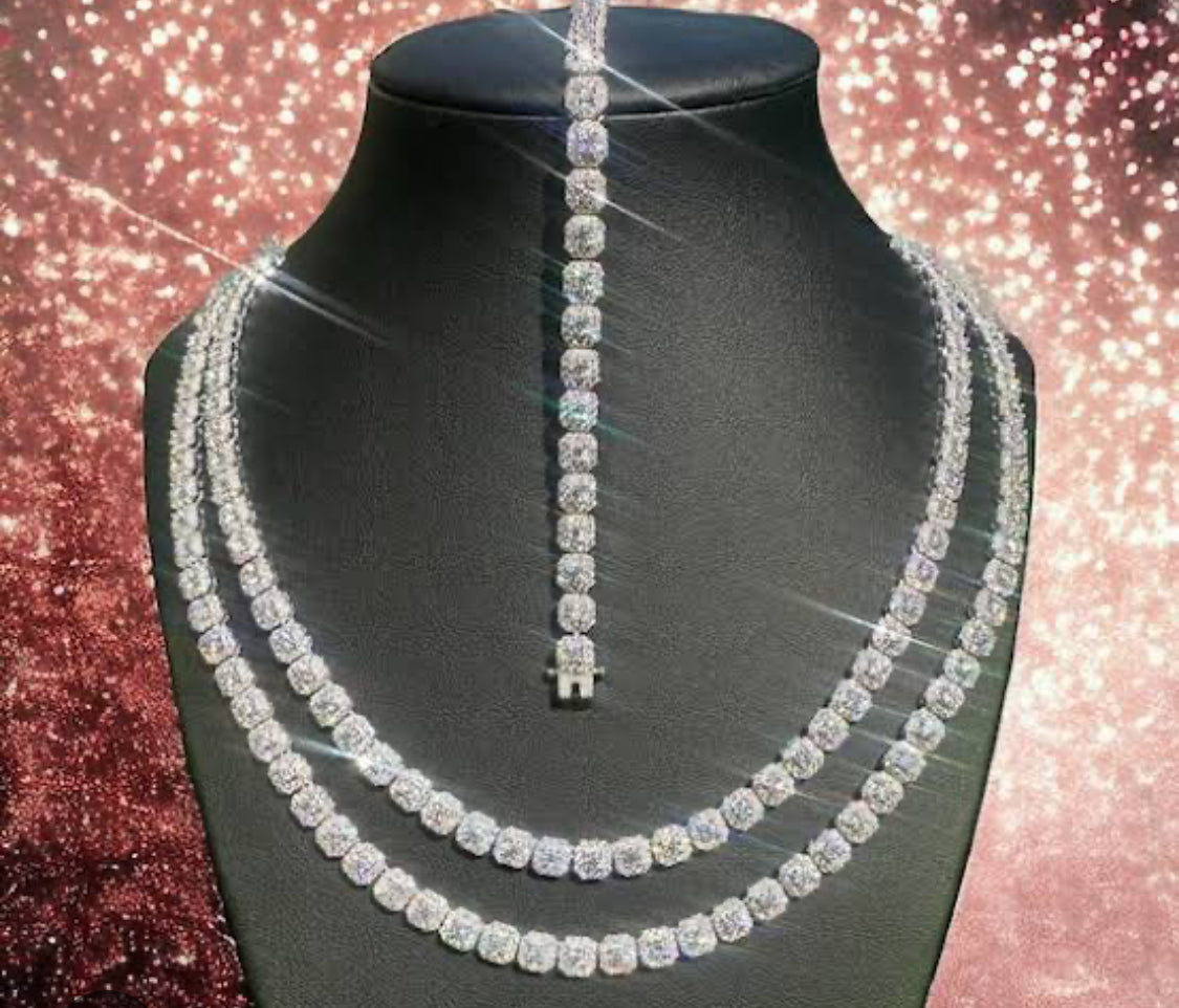Elevate your style with our Moissanite Ice Cube Tennis Chain, a timeless piece that combines classic elegance with modern luxury. Each stone is meticulously hand-set and crafted from premium D-color, VVS-clarity moissanite — a gemstone known for its brighter fire and sparkle than natural diamonds.