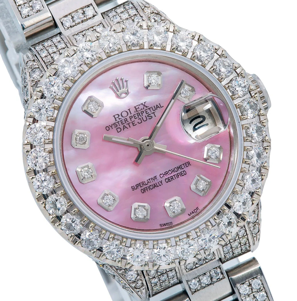 ROLEX DATEJUST 26MM 6916 PINK MOTHER OF PEARL DIAMOND DIAL DIAMOND BEZEL FULL DIAMOND OYSTER BRACELET 6.95CT