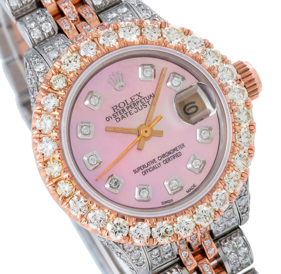 ROLEX DATEJUST 26MM 6917 PINK MOTHER OF PEARL DIAMOND DIAL DIAMOND BEZEL TWO TONE FULL DIAMOND JUBILEE BRACELET 7.25CT